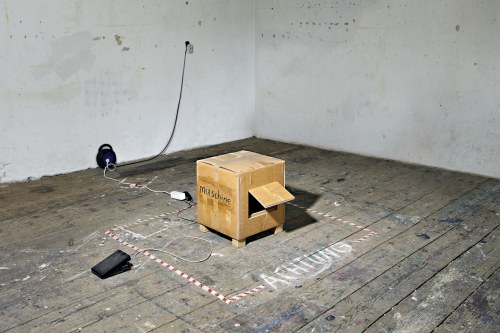 Pappschachtel, Holzkiste, Klebeband, Farbe, Elektromotor, Lautsprecher, Sprachmodul